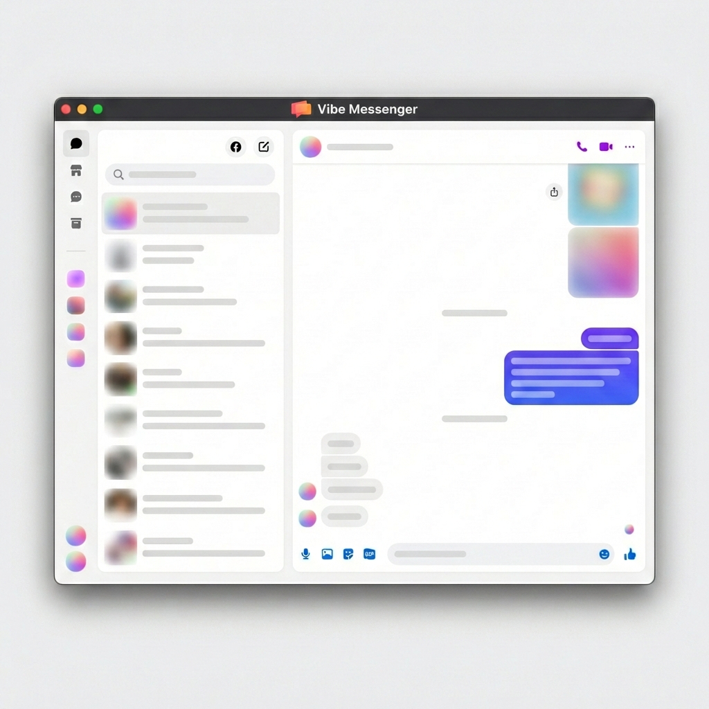 Redécouvrez vos conversations avec Vibe Messenger. L'application de bureau native que vous attendiez pour macOS et Windows. Rapide et fluide.